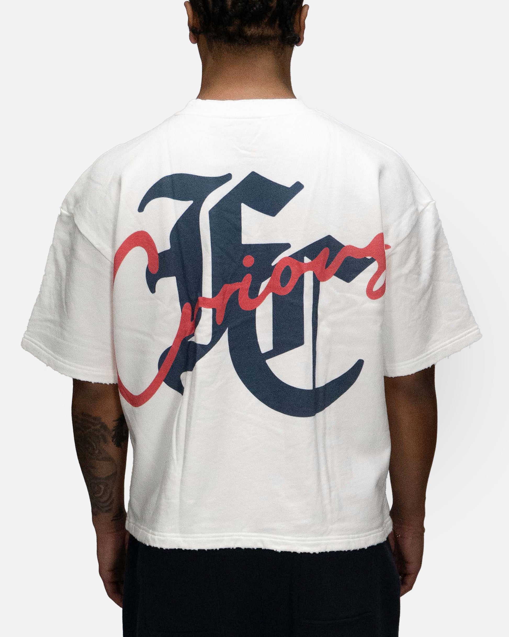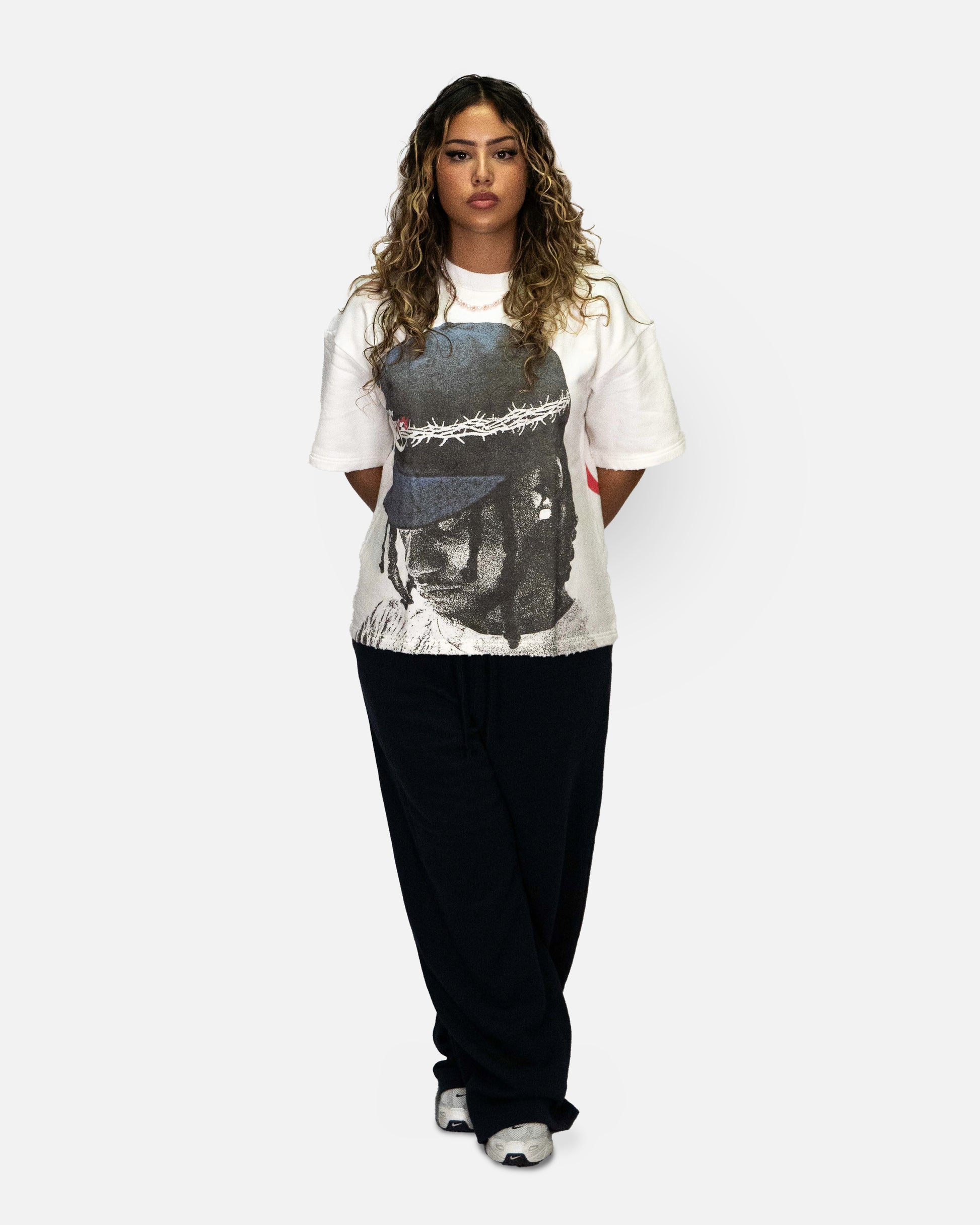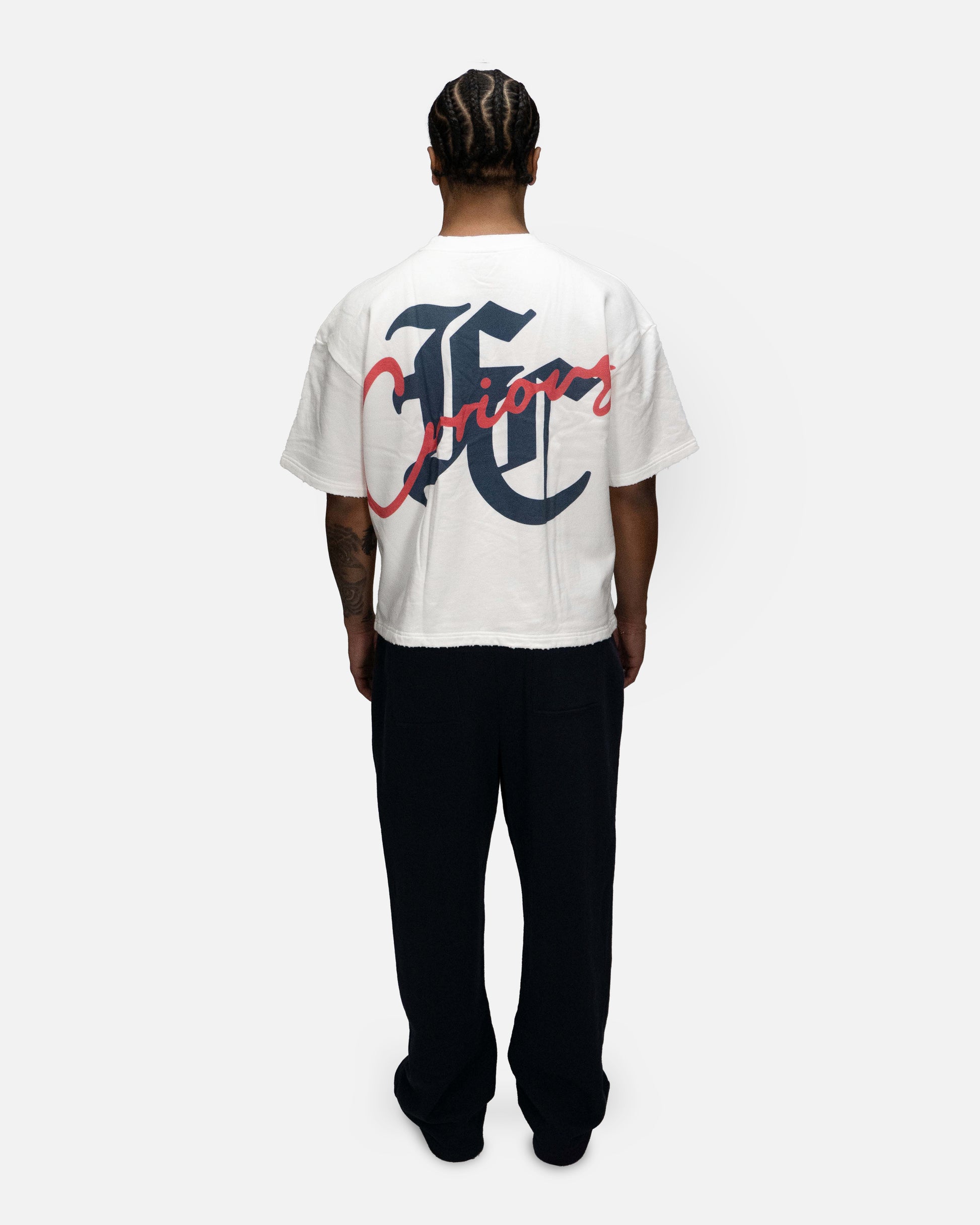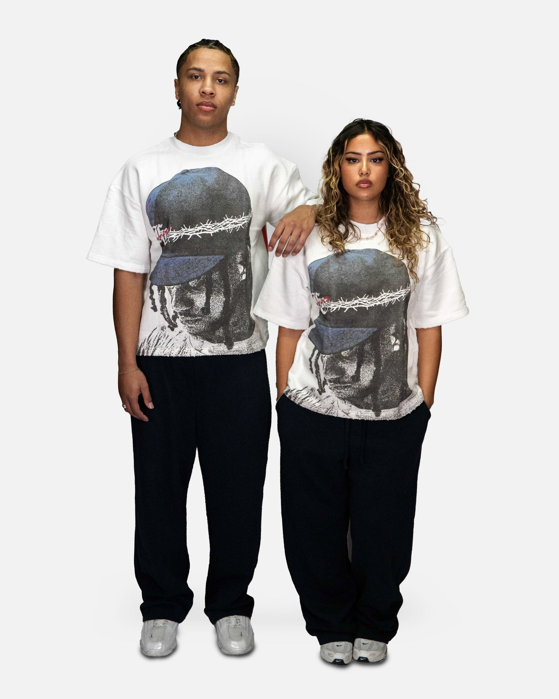 Oversized cropped fit - Male model is 6'1 wearing L - Female model is 5'5 wearing S